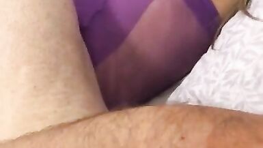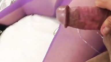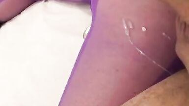 SEXY PURPLE BODYSTOCKING CUMSHOT