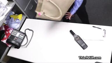 FUCKING CURVY DRESS STEALING MILF ON THE BACKROOM DESK