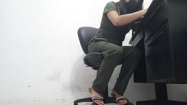 A VERY FEMININE DOCTOR MASTURBATES IN FRONT OF A PATIENT WHILE PROVIDING MEDICAL CARE.