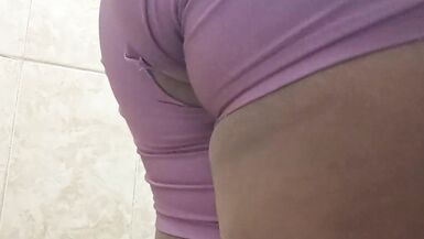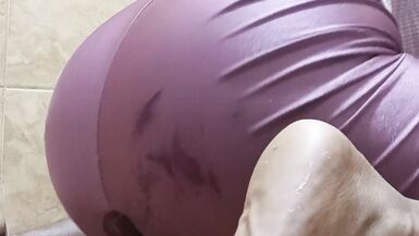. Big ass brunette is in her bathroom about to break her lycra to get a hot and delicious orgasm until she wets the entire floor with her sweet squirt
