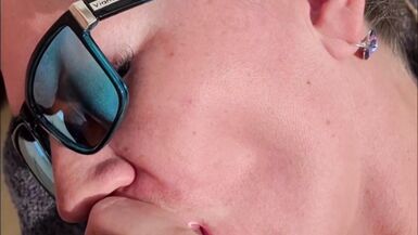 . She said, that she is just taking sun, but reality was, that she took her toy with her and she just went to play with her shaved pussy until moaning orgasm. Husband of course had first row view with his phone camera. Enjoy!