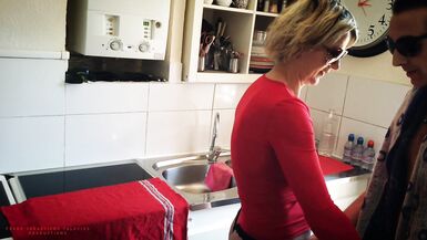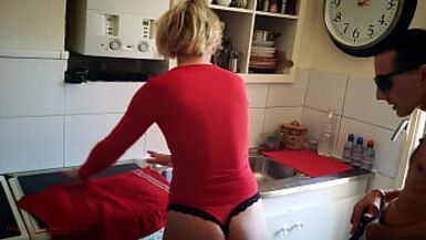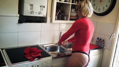 SLUTTY NYMPHOMANIAC MOTHER-IN-LAW, CLEANS IN LINGERIE TO TEASE HER STEPSON.
