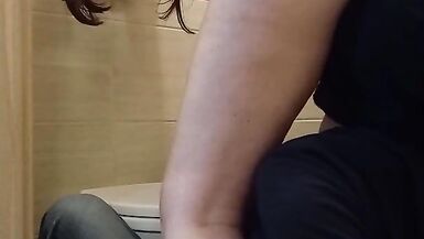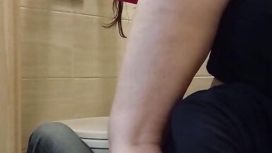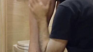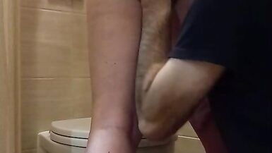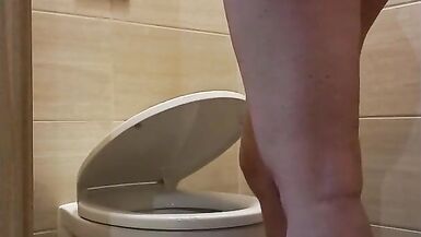 . MILF goes to the toilet, sits down and pees, then wipes her pussy. He kneels on the toilet bowl, climbs behind the man and starts licking the woman's beautiful ass. From time to time he pulls her tight ass apart and admires her sexy little ass hole.