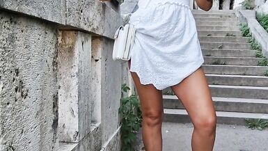 . Hot Amazemilf housewife cannot resist to show her shaved pussy to her husban while exploring the beautyfull city of Budapest.