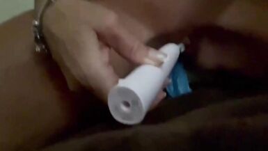 . Horny Jane rubs her clit with her electric tooth brush with another up her arse