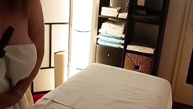 MASSAGE ON A BED WITH A BLACK DEVICE