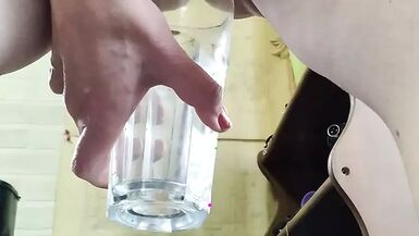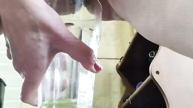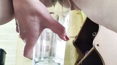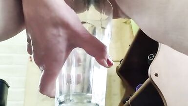 AMATEUR MATURE WOMAN WITH BIG PUSSY LIPS PEES IN GLASS