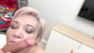 . While my girlfriend was out, her mom came to pleasure my hard cock.