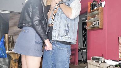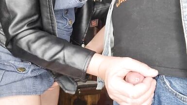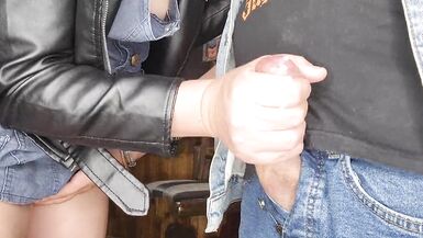 . Sexy biker chick has the right touch ,,jerking me off not to hard not to soft