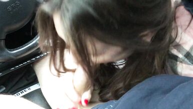 NON-PROFESSIONAL WIFE SUCKS DICK IN THE CAR AND DRINK CUM