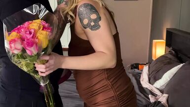 . Rod bought me glamorous flowers so to repay him I got on my knees a gave him astonishing head. I slurp and gag on his thick cock. My pretty eyes fill with enjoyment as his cum covers my face.
