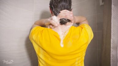 . Do u like jerking on hawt milfs taking a shower, don't u? Teasy is in the priceless mood this day so this babe allows u to worship her juicy body in the shower. Have a seat and see as this babe sluggishly washes her merry titties, peachy gazoo and lengthy legs. Have A Fun her curves in short yellow t-shirt and blue control top stockings. Would u like to take that outfit off and fuck her?