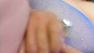 Oiling up Her muff and toy banging Her