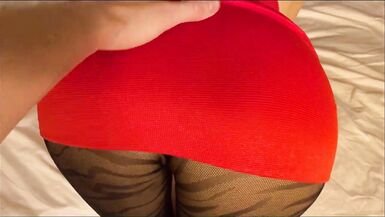 . Mrs Sex Cream teases in advance of getting pumped in her red suit and ebony patterned hose