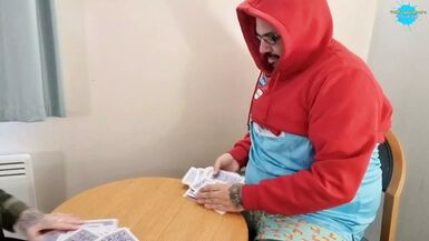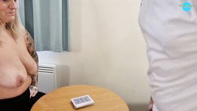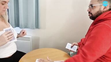 . Real non-professional pair playing disrobe poker in hotel