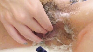 LARGE LOVE BUTTON HIRSUTE SNATCH SHAVING CLOSEUP