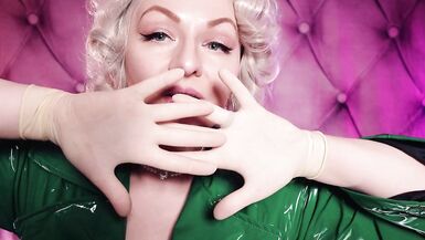 . ASMR: latex medical gloves and green PVC coat - hot pin up mother I'd like to fuck Glaminatrix Arya Grander - free vid