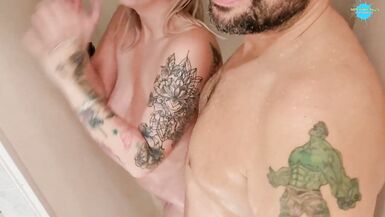 MOTHER I'D LIKE TO FUCK GIVES SLOPPY ORAL IN THE SHOWER