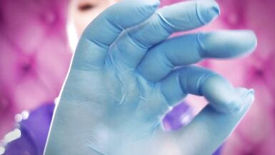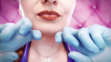 . ASMR clip sexy sounding with Arya Grander - blue nitrile gloves fetish close up movie scene