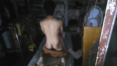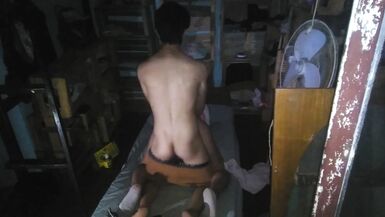 My girlfriend rides with her striped costume betwixt drawers of clothing and mattress on the floor when my parents leave