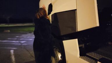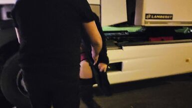 . I show myself with my boyfriend when I watch a trucker watching me, so I'm going to ask him if this chab can fuck me in his truck, which this chab is crazy to do..
