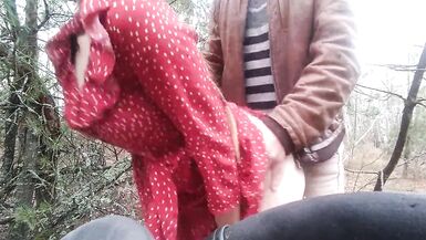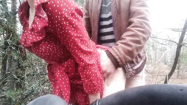. She stopped to pee in the woods, and he took the opportunity to put his hand in her vagina and fuck her in nature