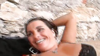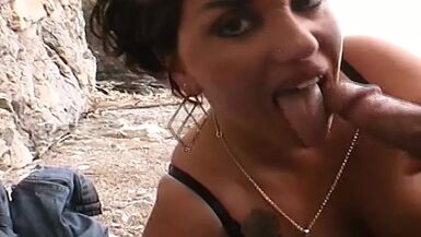 SEXY GERMAN EBONY GETTING HER HUGE TITS COVERED WITH CUM OUTDOORS