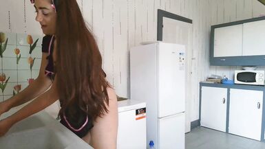 FRENCH IN THE KITCHEN SHE LOVES TO BRING IN HER BIG DICK ALONE AND SHOW HER BIG ASS
