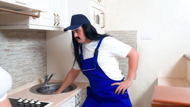 PLUMBER FUCKED HOT MILF AND CUM IN HER MOUTH