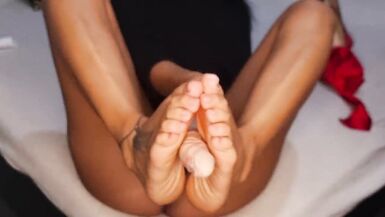 LATINA GIVES A FOOT JOB WITH DILDO AND CREAM