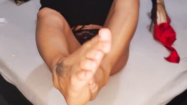 . I am a tattooed latina with red high heels and I love to give a foot job with dildo using cream to lube it up. I have great legs and a round ass that I like to show in front of the camera.