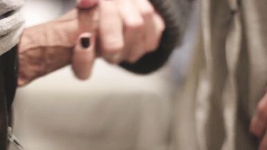 . She goes on a business trip and shares a hotel room with a co-worker. The friend masturbates with the bathroom door open to tease her and she ends up going to him to help.