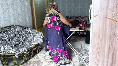 THE OLD STEPMOM TOOK OFF HER DRESS TO STROKE HIM, AND GOT A DICK IN THE ASS AND ANAL SEX