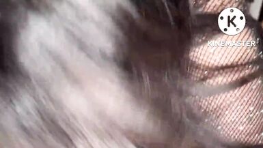 . Wife wearing fishnet bodysuit having fun while imagining sucking a big cock while I fuck her