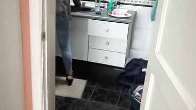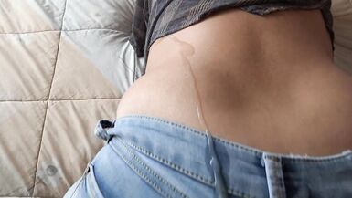 THE STEPSON OF THE MAID MAKES A GREAT CUMSHOT ON MY WIFE'S ASS WITH HER JEANS ON