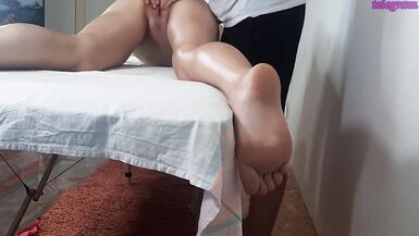 . wife decided to go for a massage. she really liked the masseur and she was a little excited and her pussy became wet. when the massage therapist touched her pussy, she reached out to the penis and beg
