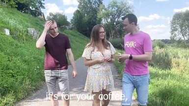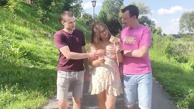 . Russian milf was walking in a public place, tourists came up to her and offered her a ride in a car. All this ended with cum in her pussy